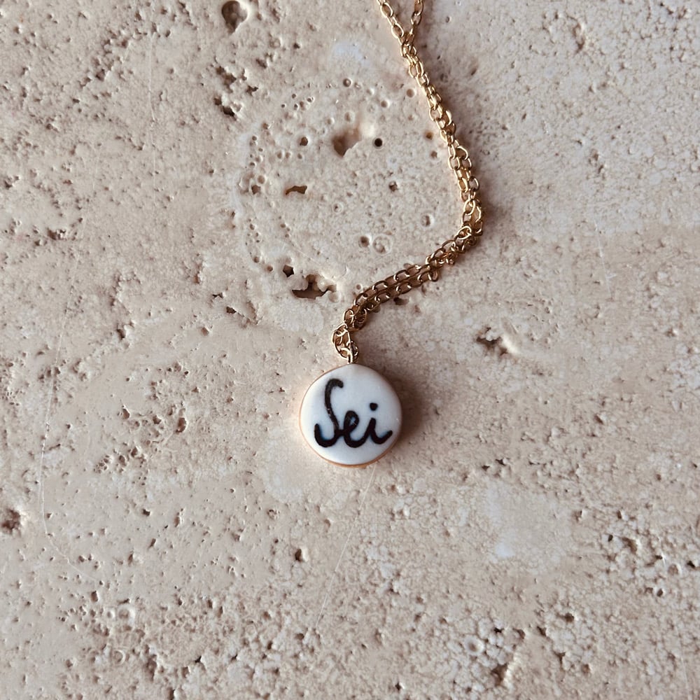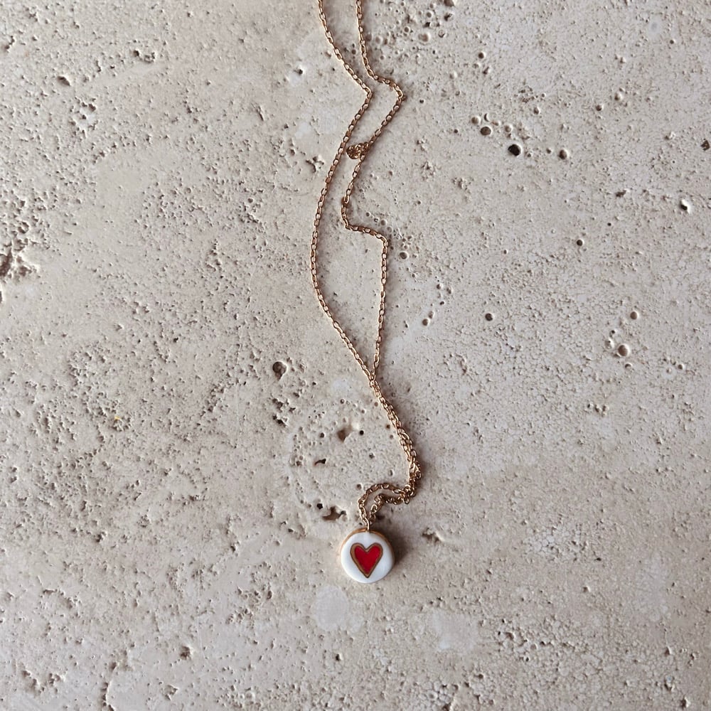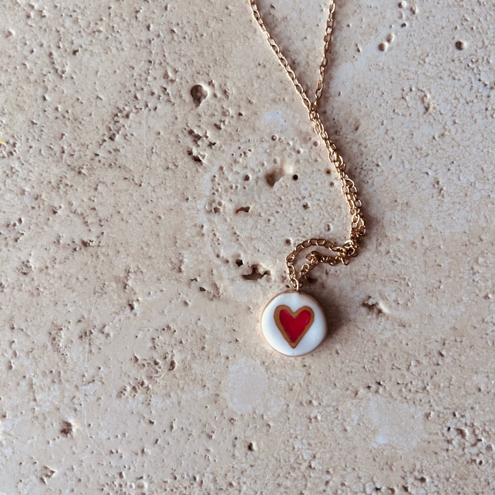 Collana con ciondolo cuore in porcellana modellato e decorato a mano e terza cottura di oro lustro.