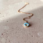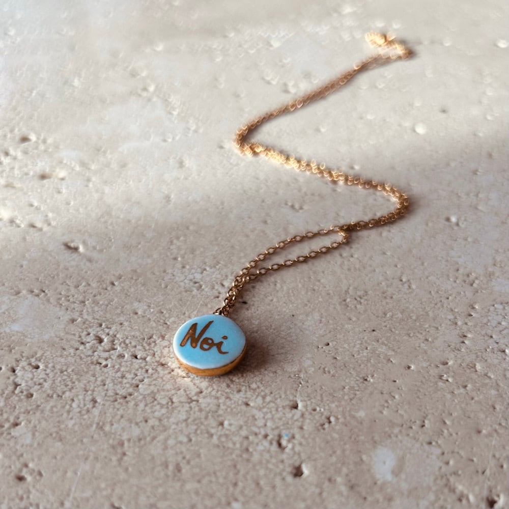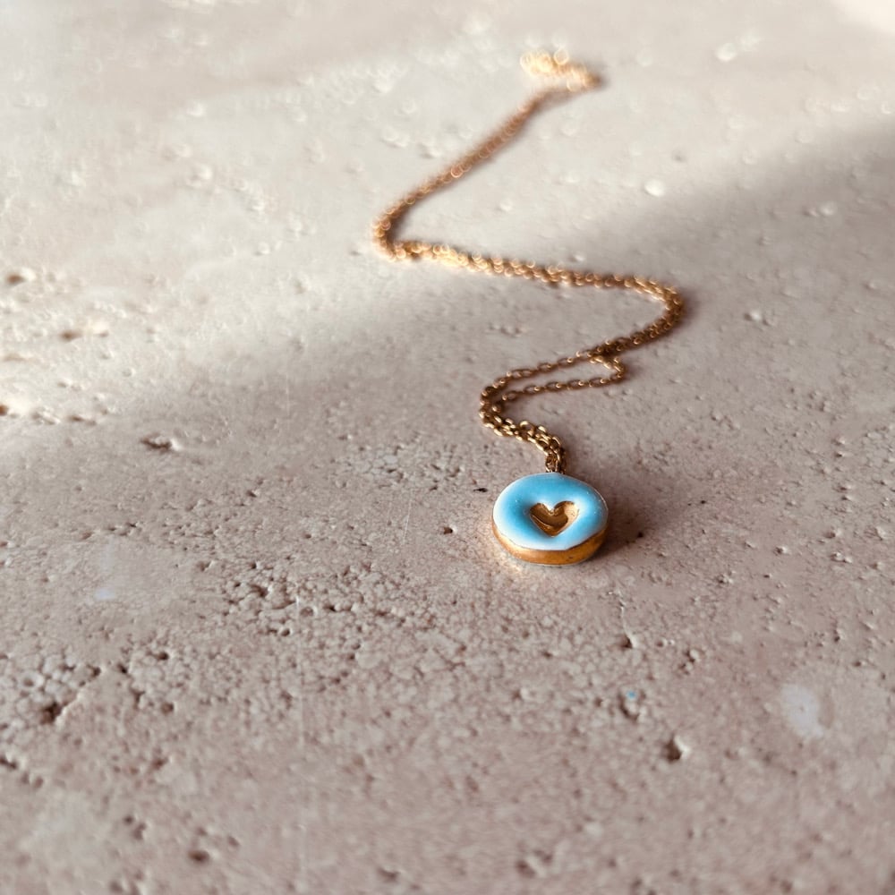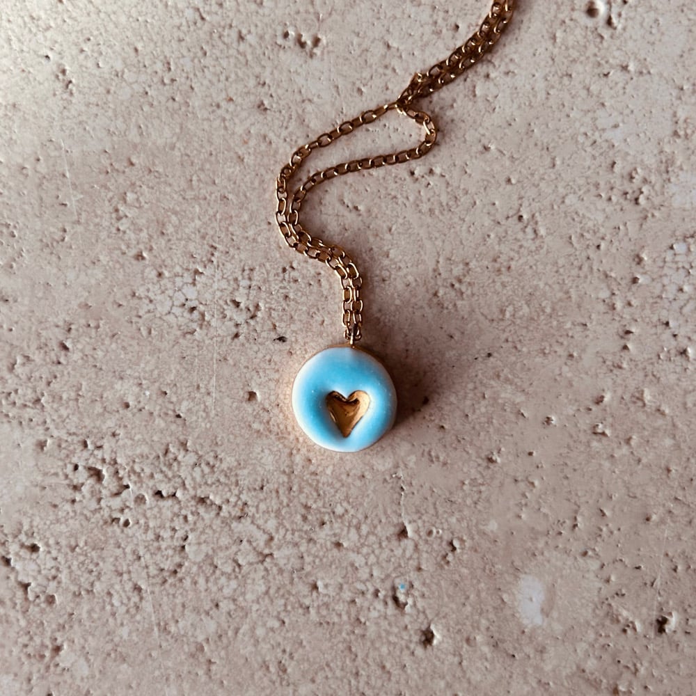 Collana con ciondolo cuore in ceramica modellato e decorato a mano e terza cottura di oro lustro.