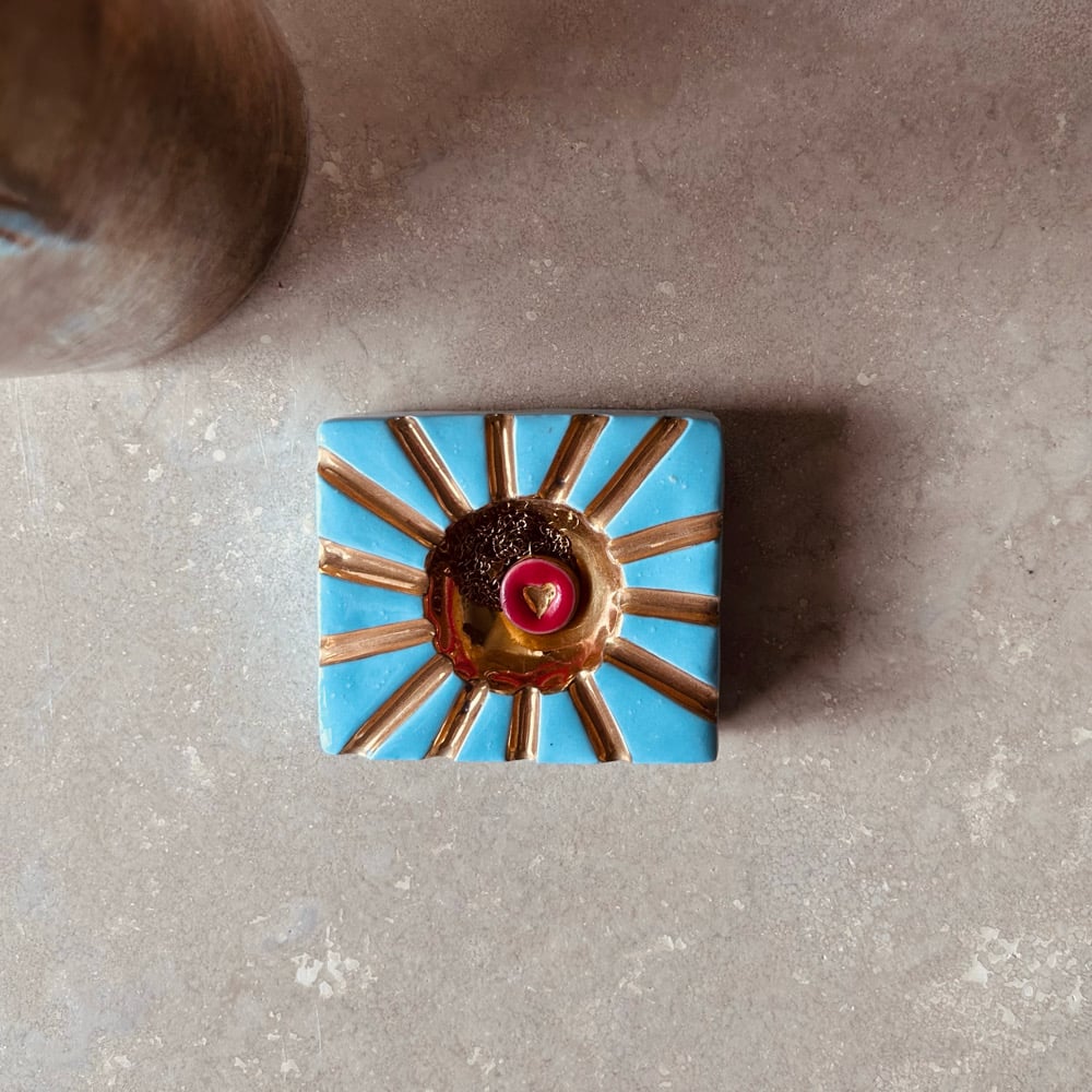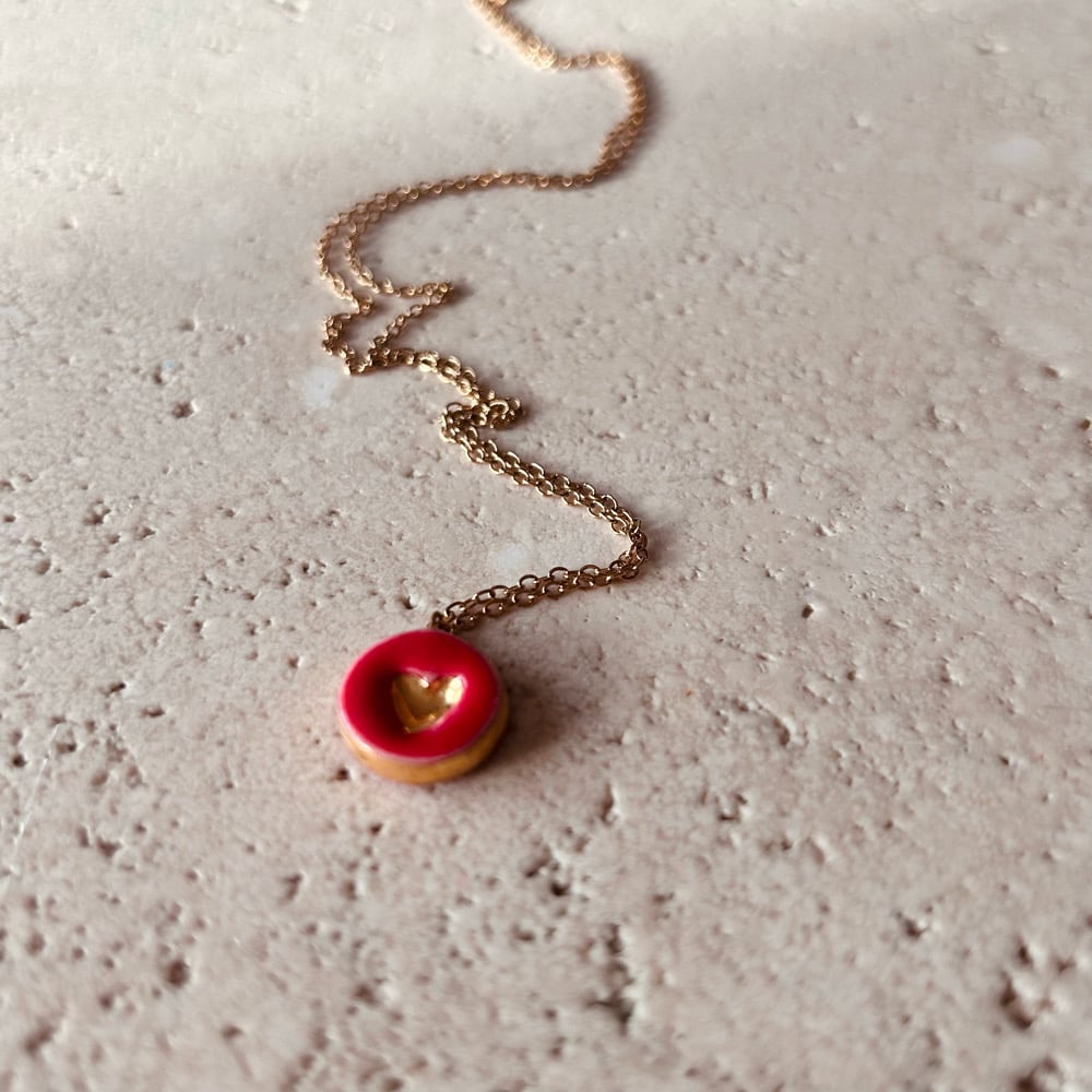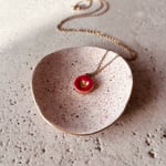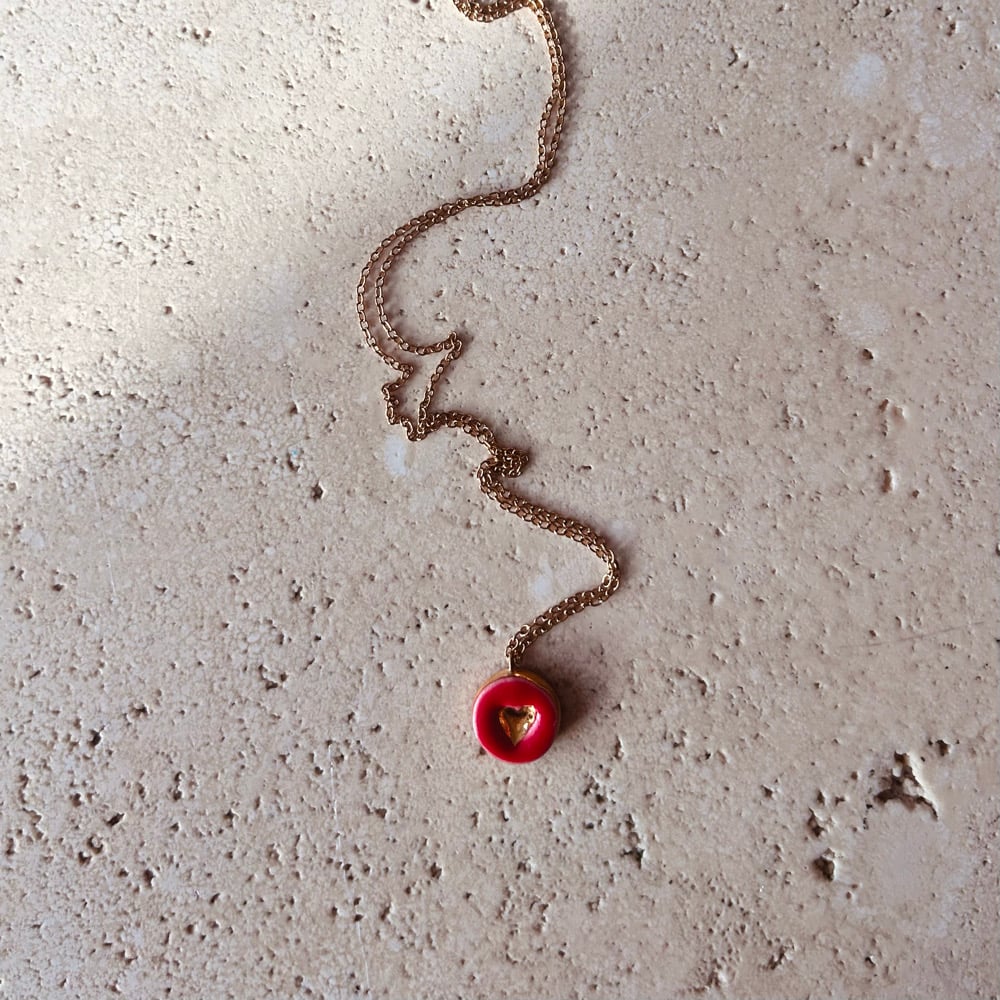 Collana con ciondolo cuore in ceramica modellato e decorato a mano e terza cottura di oro lustro.