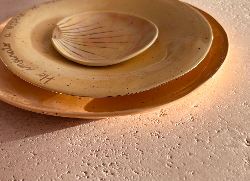 Set di tre piatti in ceramica fatto a mano.